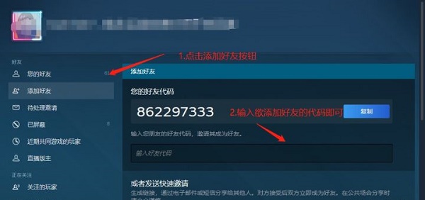 4.也可以直接在其他地方直接点击想要添加的好友人的头像点击添加好友即可。然后在输入好友代码框输入好友的错误代码 。国内你能搜到的代码PC端的加速器应该都是收费的 ,这个看个人情况,好友